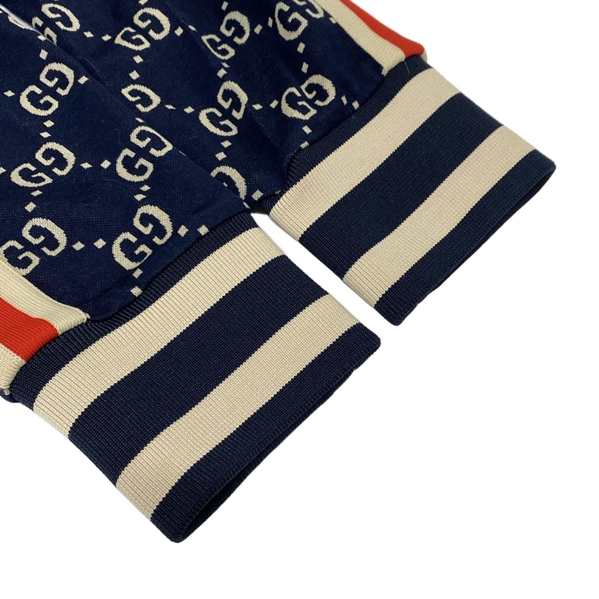 GUCCI グッチ ジャージ サイズL メンズ GGジャカード コットン ジャケット 496919 ネイビー×アイボリー×マルチ
