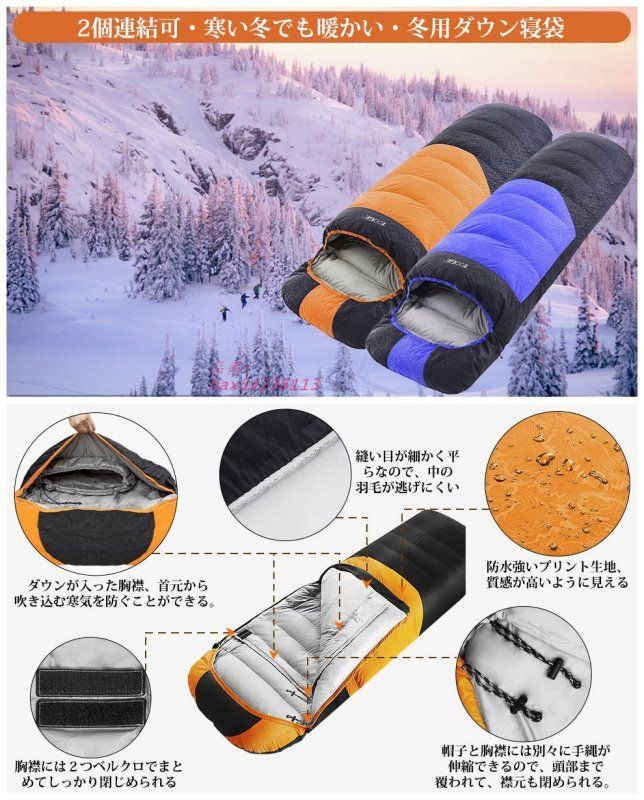 寝袋 封筒型 冬用 ダウン シュラフ 冬 羽毛寝袋 最低温度-25 車中泊 防水 コンパクト 災害 セット キャンプ 大きいサイズ 丸洗い 防寒 2 KG hax 5 v 236113