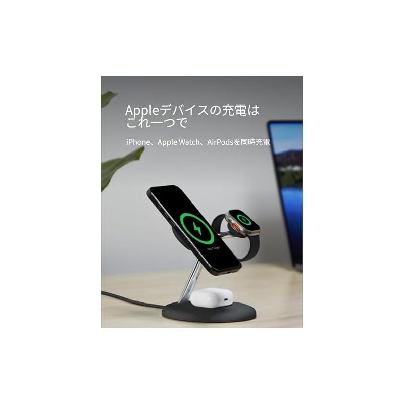 【デスク上の充電器をこれ1つに】iPhone、Apple Watch、AirPodsの充電はこれ1つで。ケーブルの無いすっきりとしたデスク環境を実現
