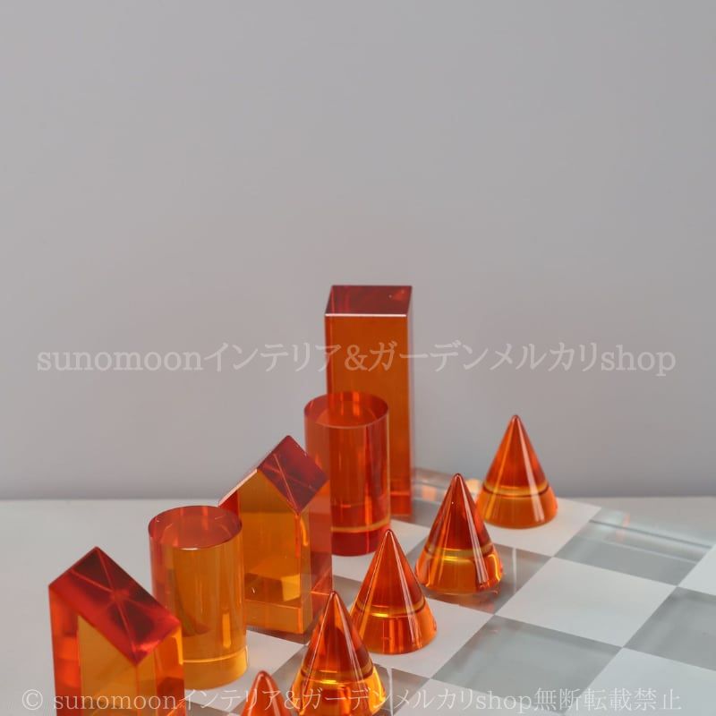 オブジェ チェスセット デザインチェス クリスタル風 モダン インテリア雑貨 ホワイト オレンジ ブラック ギフト アートボード 幾何学 ガラス調 置物 装飾品 おしゃれ インテリア シンプル