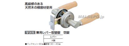マツ六 レバー錠 エクレ 兼用取替レバー錠 空錠 EL300-1MW-ST-60 シルバー 木製レバー