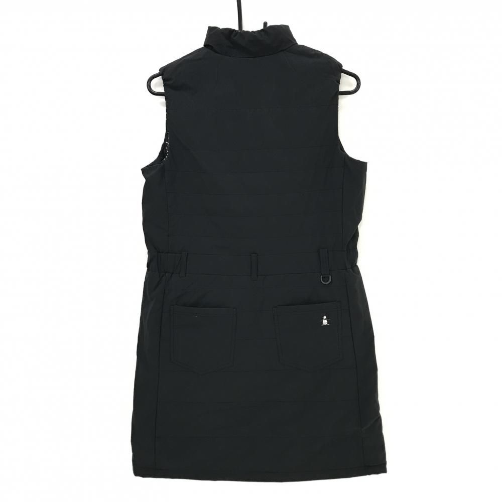 超 マンシングウェア リバーシブル中綿ワンピース 黒×白 総柄 ノースリーブ レディース M ゴルフウェア Munsingwear