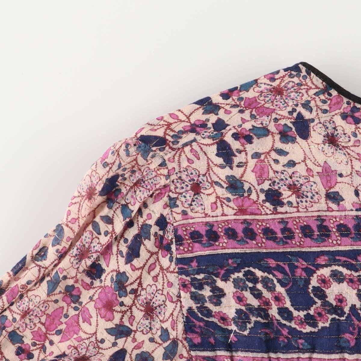 古着 総柄 ボタニカル柄 ミモレ丈 インド綿 長袖 ワンピース レディースM相当 evb 031114