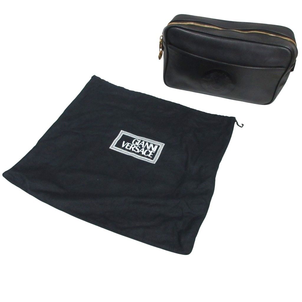 ジャンニヴェルサーチ ヴェルサーチェ GIANNI VERSACE オールレザー クラッチバッグ メデューサ エンボスロゴ ハンドバッグ ゴールド金具 皮革 黒 ブラック IBO 82