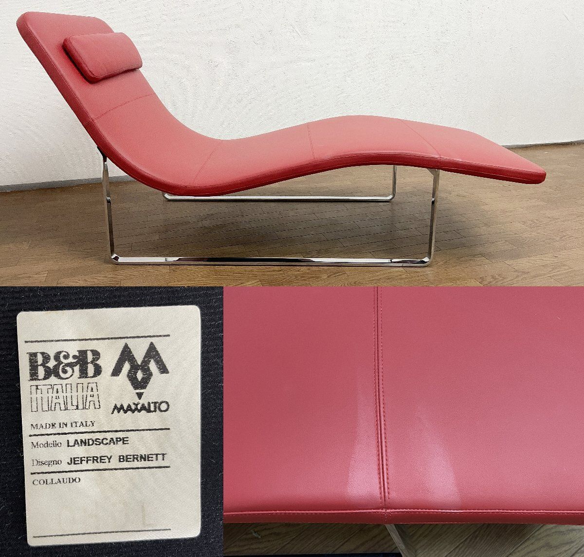 B-B ITALIA ビーアンドビーイタリア ランドスケープ シェーズロング 寝椅子 ヘッドレスト付 レザー レッド 赤 1人掛けソファ チェア 貝1103