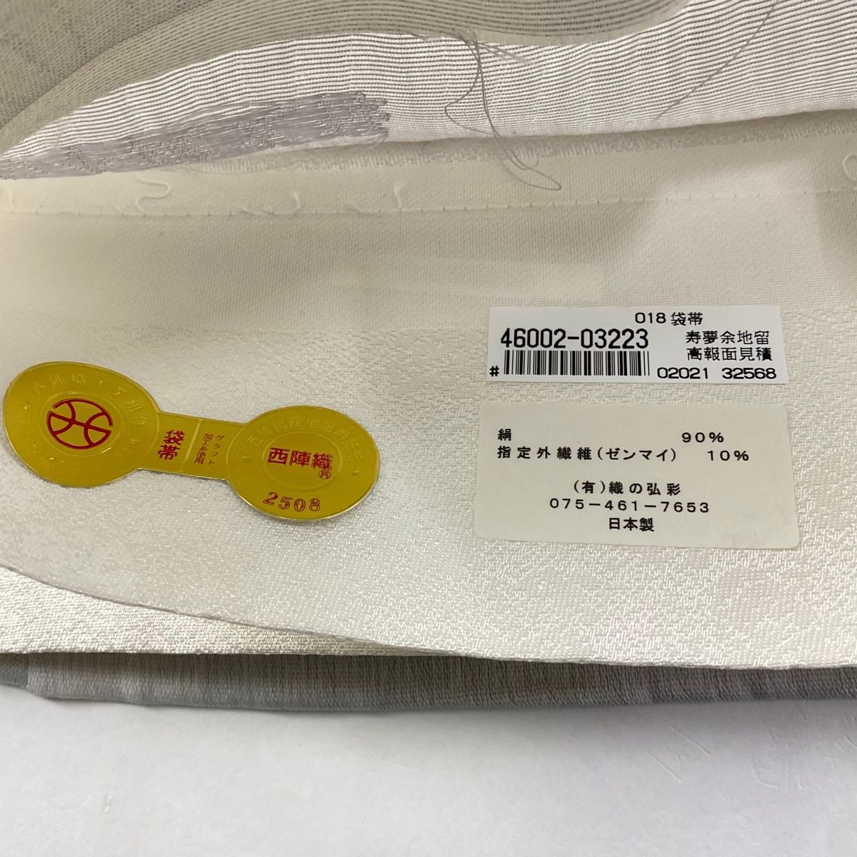 袋帯 証紙 縞 幾何学模様 灰色 六通 正絹