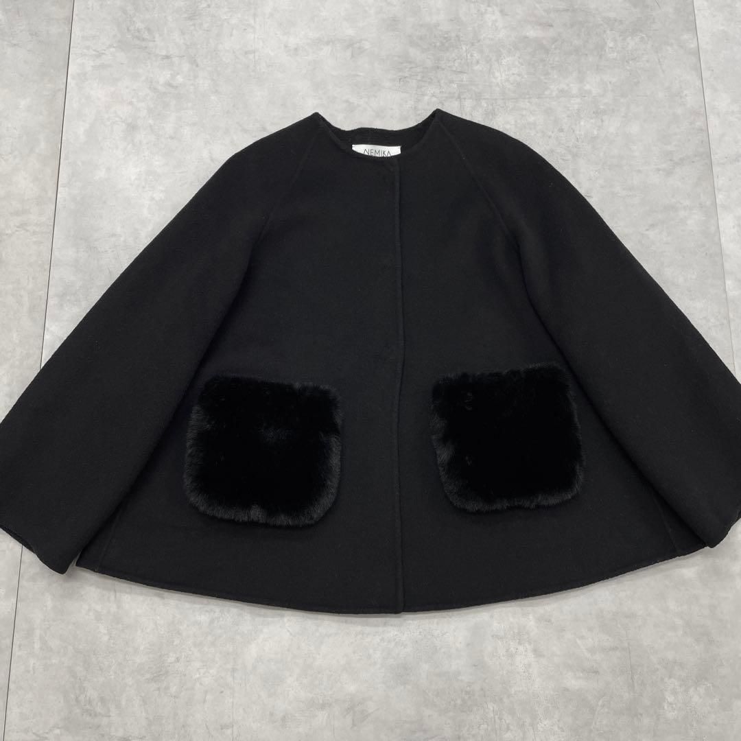 NEMIKA ネミカ Leilian レリアン ケープコート ノー ショートコート フ ファー ウール 黒