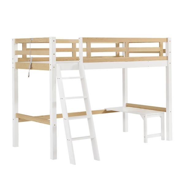 ロフトベッド 木製 シングル 高さ150 cm 可動式デスク付き はしご 天然パイン材 天然木ベッド ミドルタイプ ローデスク付き 大人 子供部屋 シングルベッド