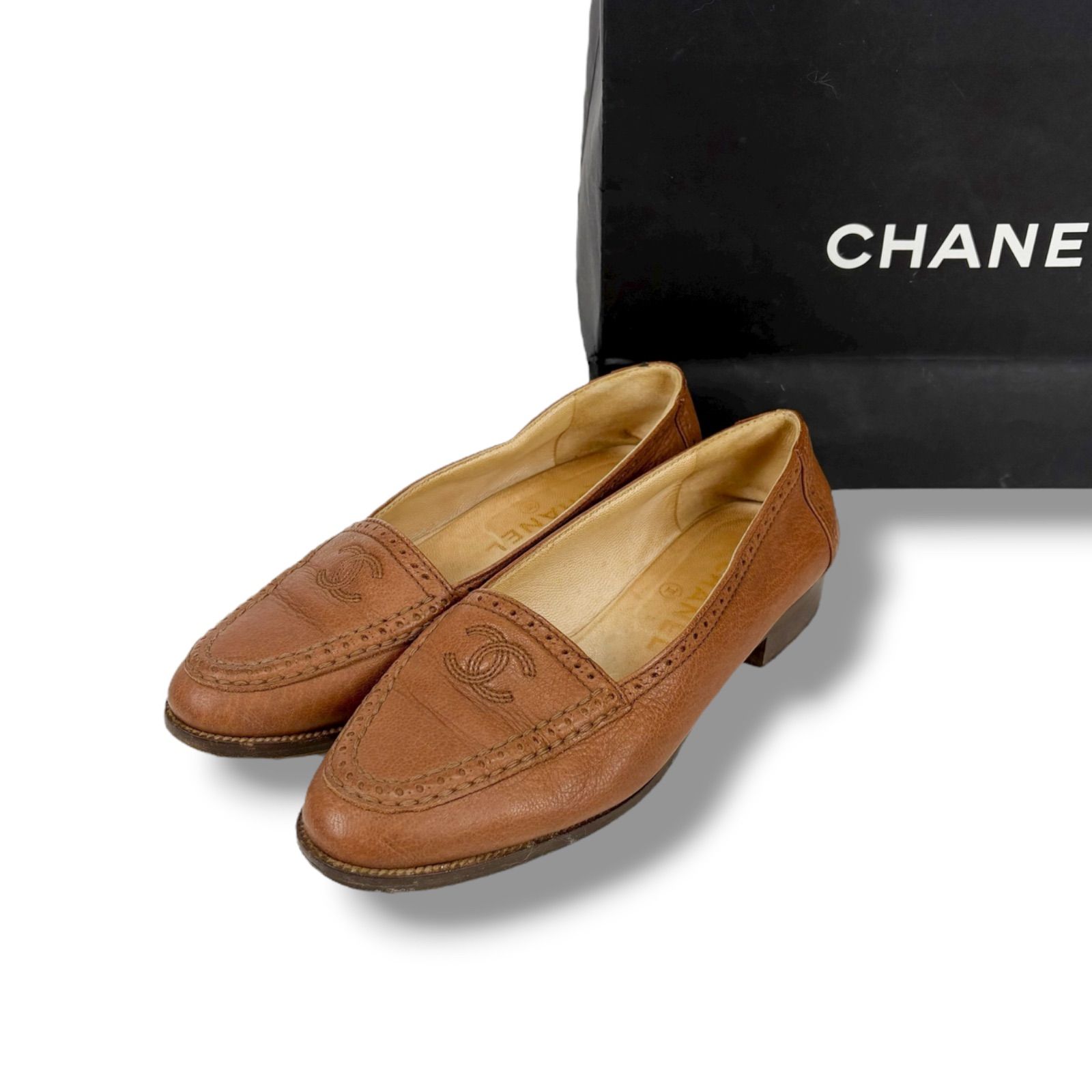 シャネル CHANEL ココマーク ステッチ ローファー ブラウン レザー 36ハーフ 23.5 cm