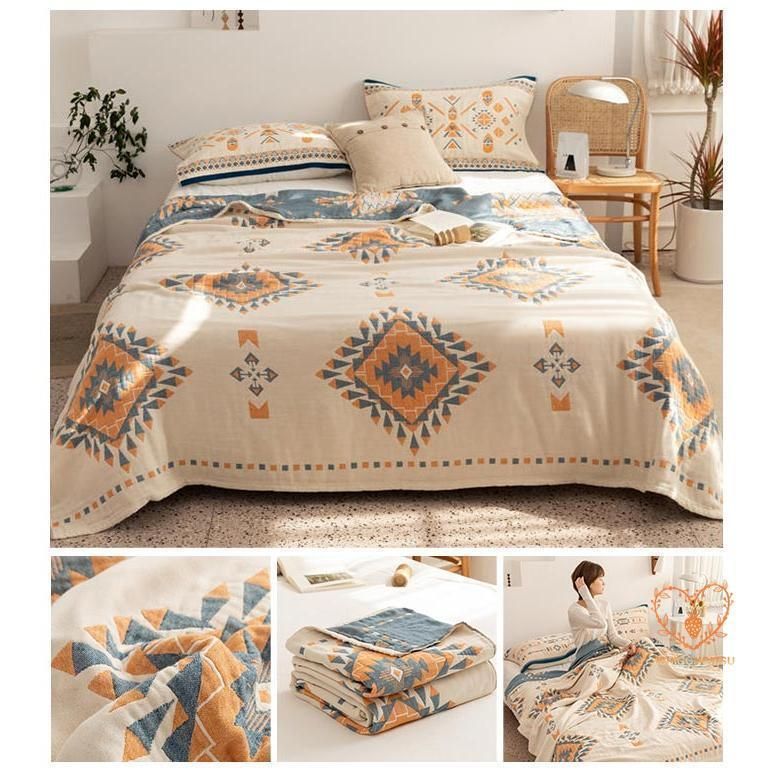 ガーゼケット ダブル 綿 4重ガーゼ ボヘミアン風 タオルケット 夏掛け 肌掛け ブランケット 4重ガーゼケット 涼感 吸湿 吸水 通気性 洗える ガーゼタオルケ ZYP 31秋冬