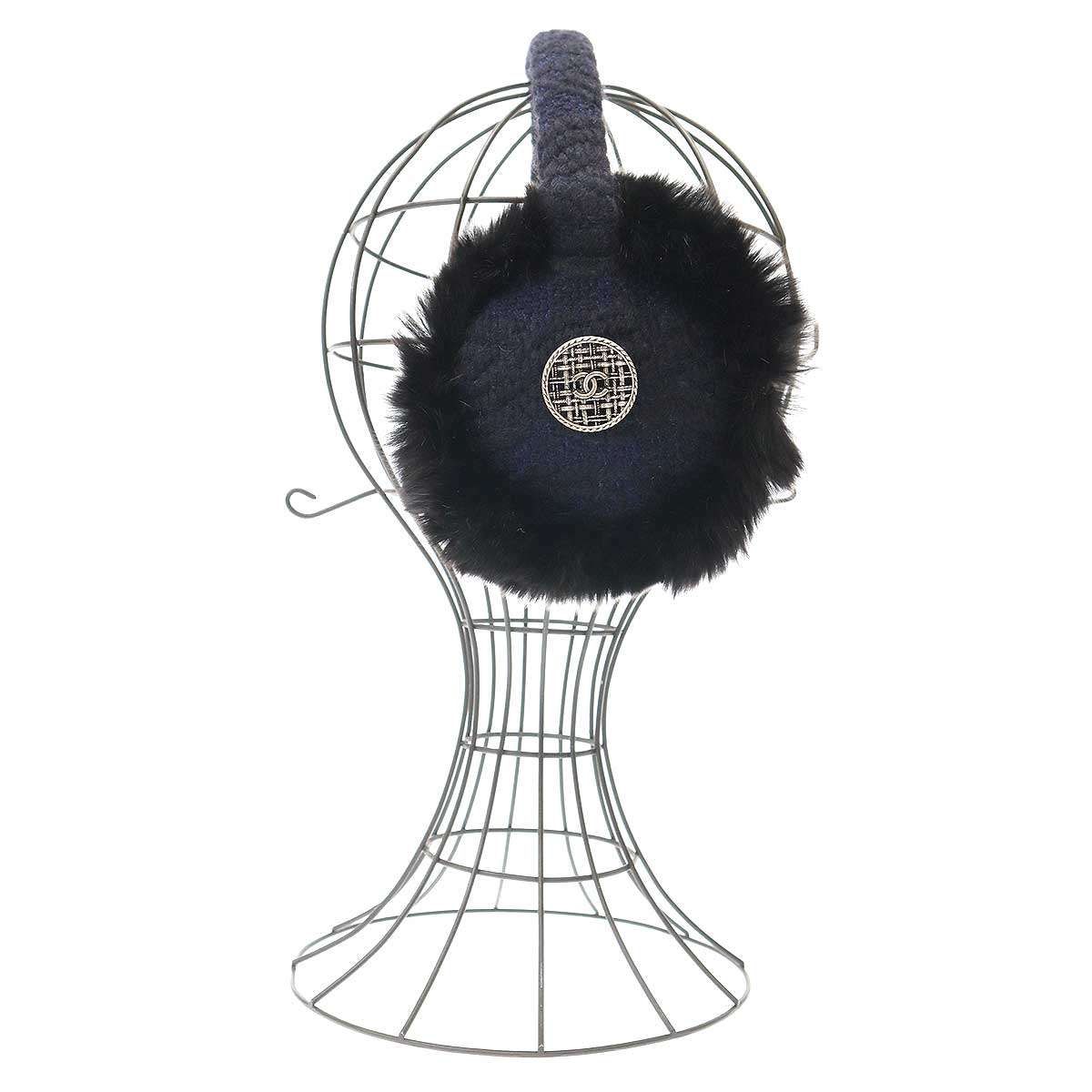 CHANEL シャネル ココマーク ツイードファー イヤーマフ ネイビー×ブラック