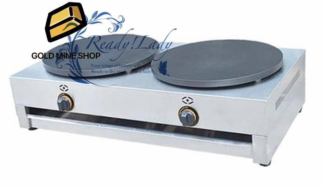 業務用ガスダブルヘッドノーエッジクレープメーカーノンスティックパンケーキメーカークレープパンフルーツパンケーキメーカー