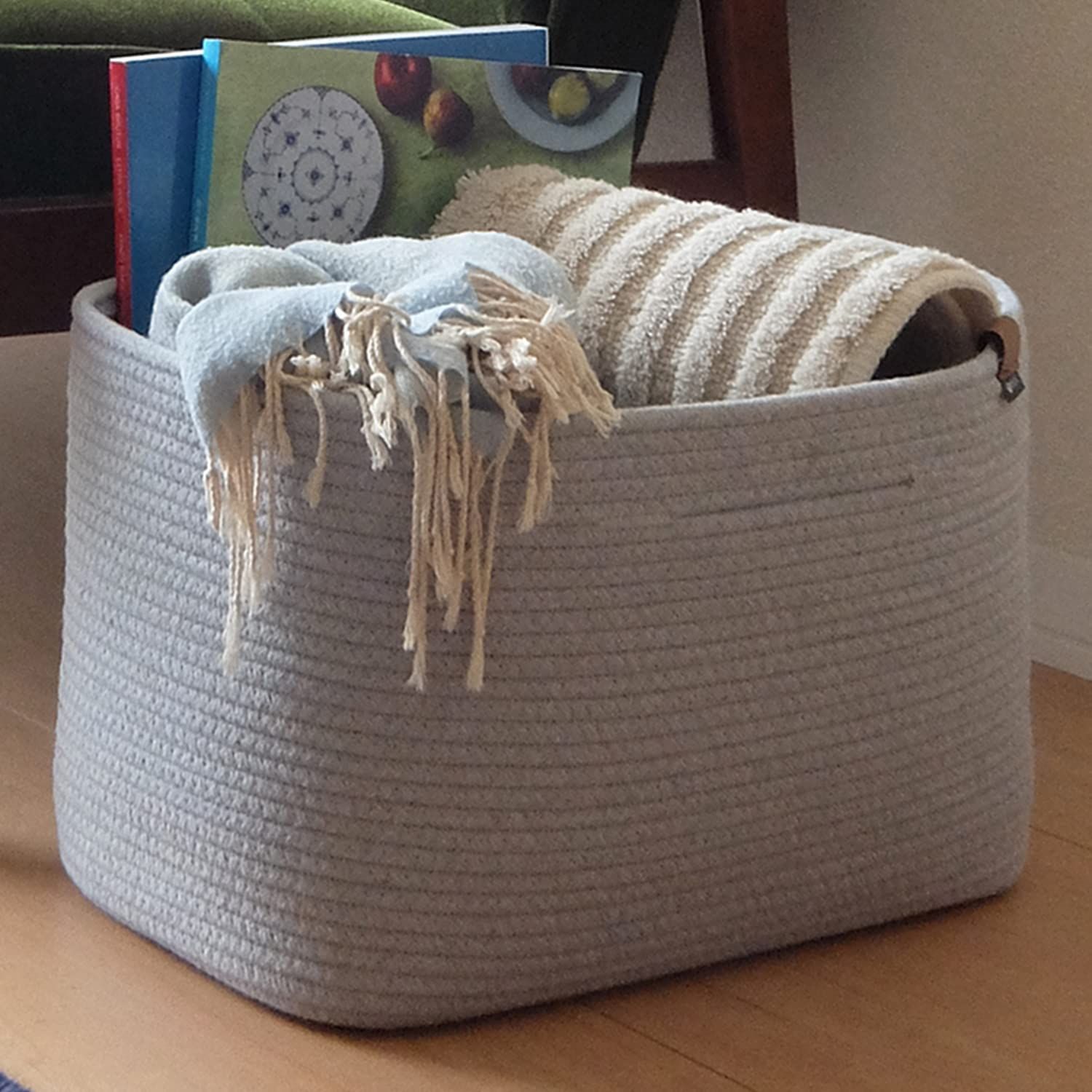 Color:ライトグレー_Style:スクエアボックス 山善(YAMAZEN) 収納ボックス (かご) スクエア (カラーボックス対応) 洗濯カゴ おもちゃ タオル 収納 小物 ケース バスケット [MOC(モック) ロープスクエアボックス] ライトグレー Y-MOC-RPSB-LGY