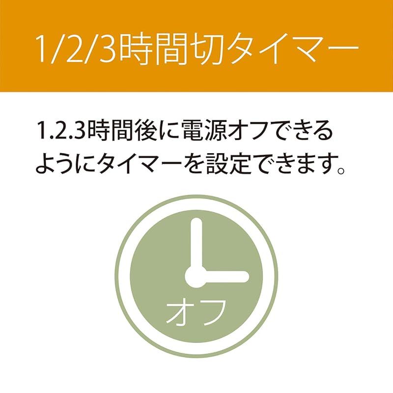 タイマー:1/2/3時間切タイマー、5時間自動オフ