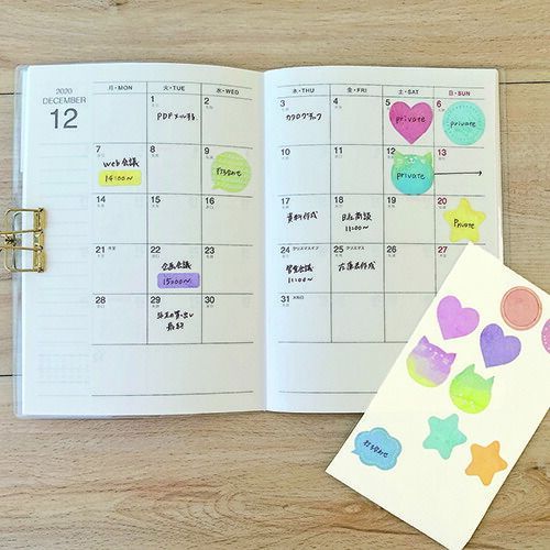 詳細情報人に見られたくない予定や内容を隠すことができるシールです。シールの上から文字を書くこともでき、貼ってはがせるシールなので、訂正シールとしてもお使いいただけます。
