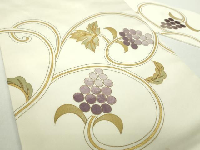平和屋着物 塩瀬 九寸名古屋帯 駒刺繍 葡萄唐草文 金彩 正絹 ps