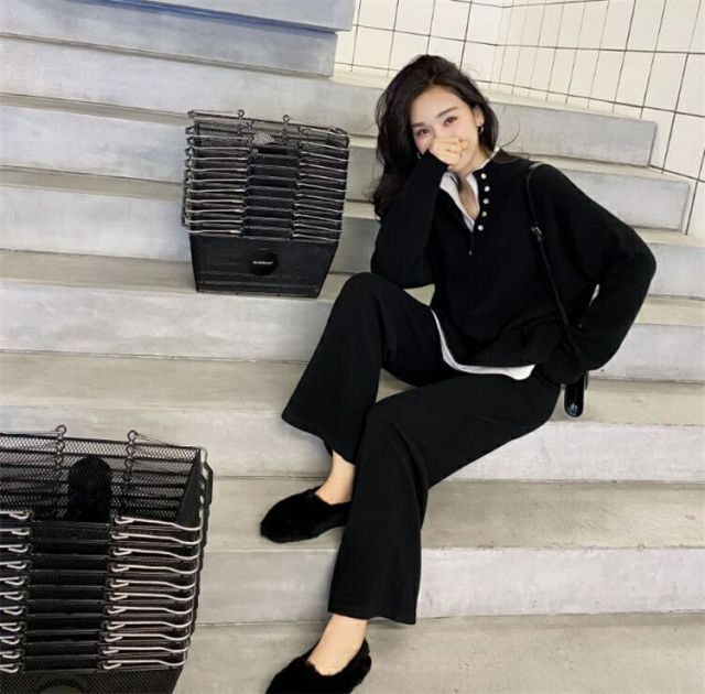秋冬2点セットニットセットレトロ洋風ワイドパンツ職業スラックス