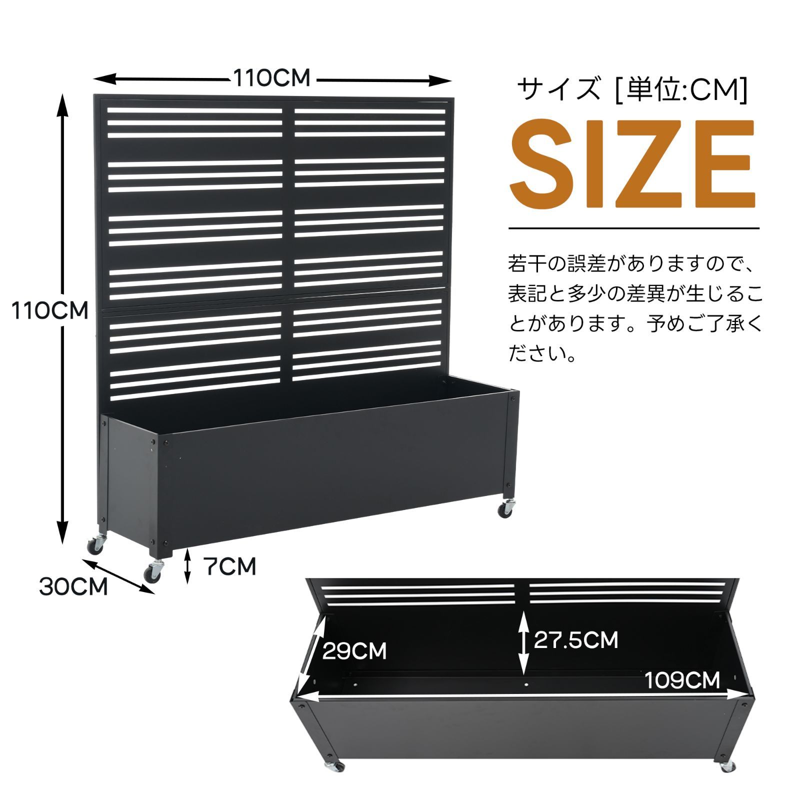 フェンス プランター付き 目隠し キャスター付き 花壇フェンス 簡単設置 電着塗装 幅110×高さ110 cm ガーデニング 花立て 屋外 室内 園芸用品 耐久性 スチール プランター ガーデンラティス プランターボックス 庭園 おしゃれ ブラック