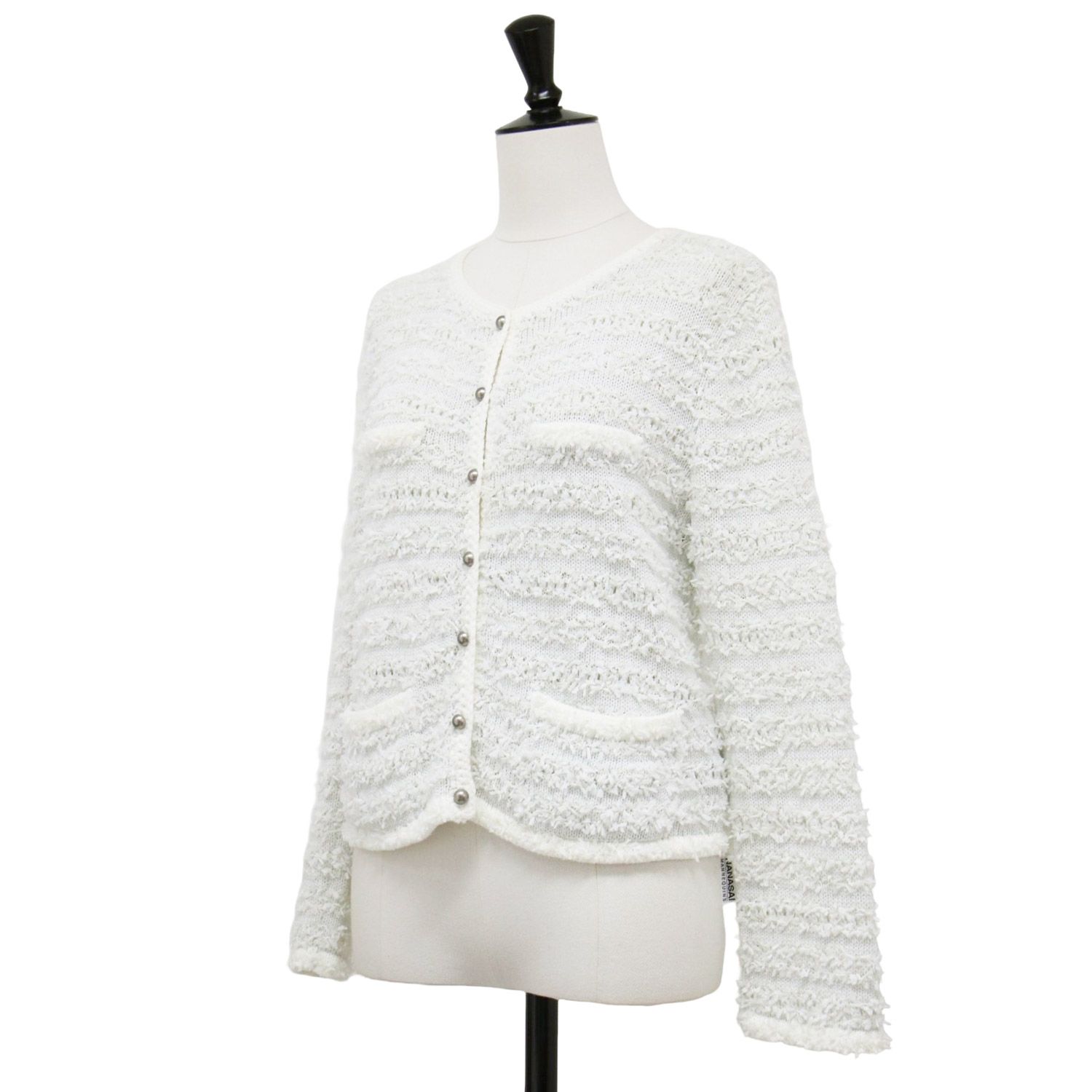 FOXEY フォクシー カーディガン ホワイト 白 サイズ 38 S ツイード ニット ジャケット ショート丈 クルーネック 長袖 コットン トップス セーター 羽織り レディース