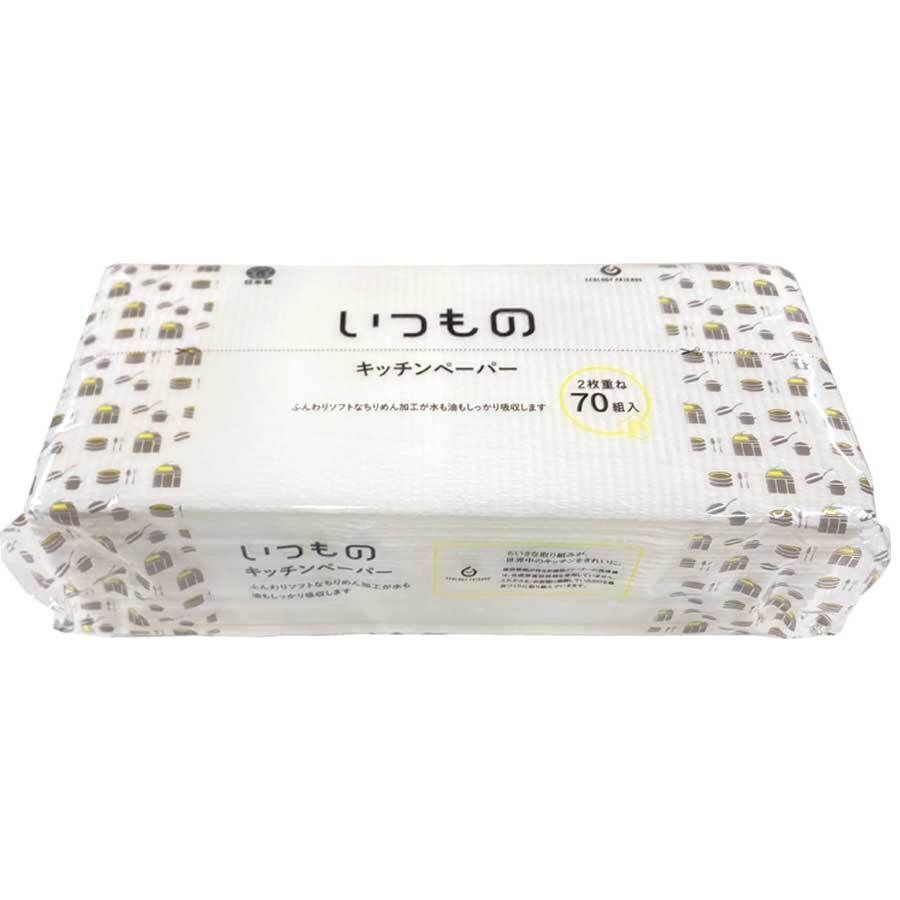品 名:【ケース販売】服部製紙 いつものキッチンペーパー 2枚重ね70組入(140枚)×80個入 日本製