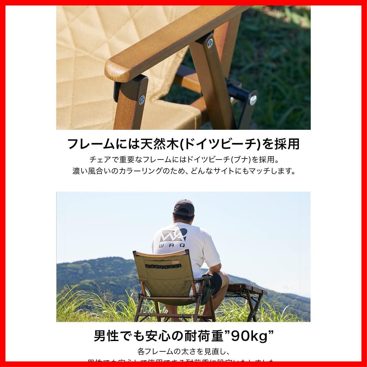 WAQ Folding Wood Chair フォールディングウッドチェア ローチェア 折りたたみチェア ウッドチェア キャンプチェア キャンプ椅子 ドリンクホルダー