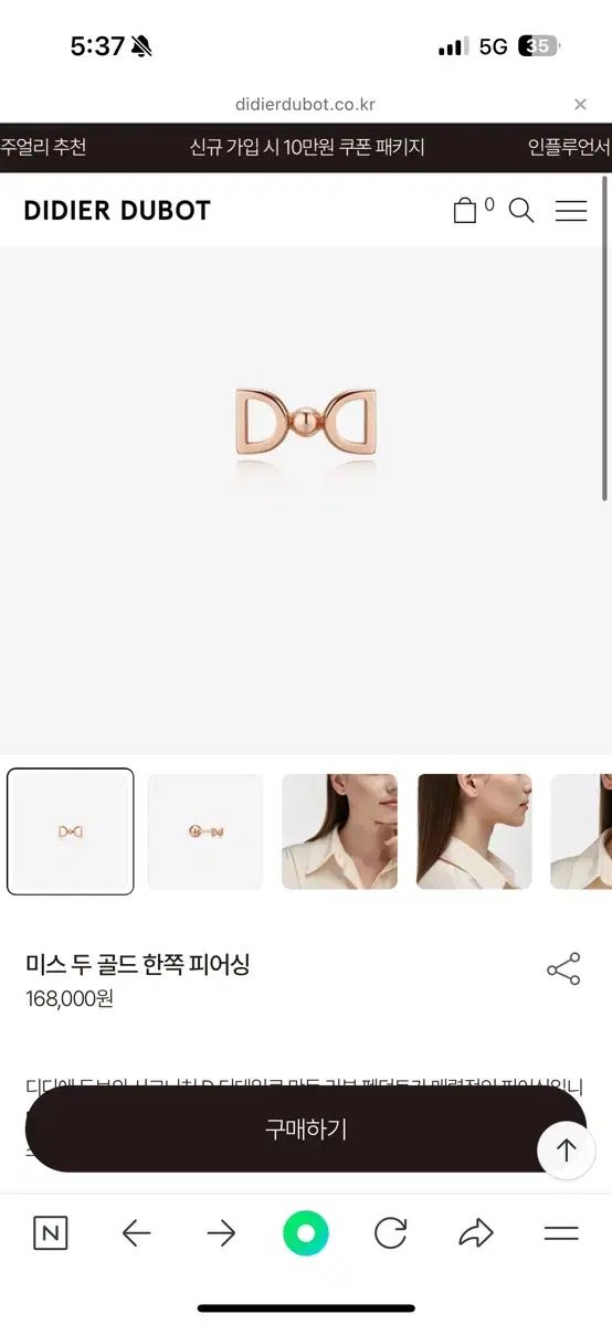 DIDIER DUBOT ディディエドゥボ ミス 二 ゴールド 片側 ピアス