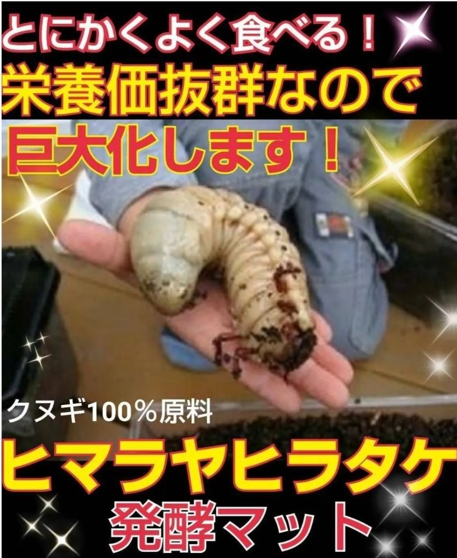 カブトムシ幼虫が巨大化する栄養価抜群の『改良版!ヒマラヤひらたけ菌床発酵カブトムシマット』の出品になります(写真は10枚添付してありますのでご覧下さいませ)