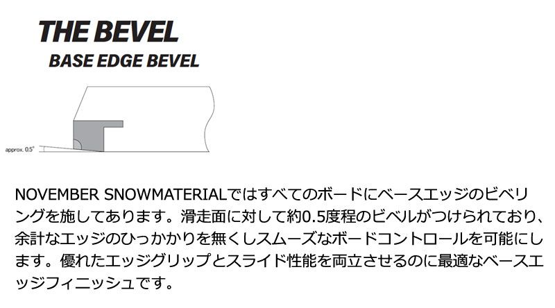 キャンバーにはパウダーでの浮力と反発性能を両立させたAMTキャンバー(オールマウンテンキャンバー)を採用。補強材にはハイパワーカーボンストリングを採用し、全長における反発性能の向上を図るとともに、接雪点付