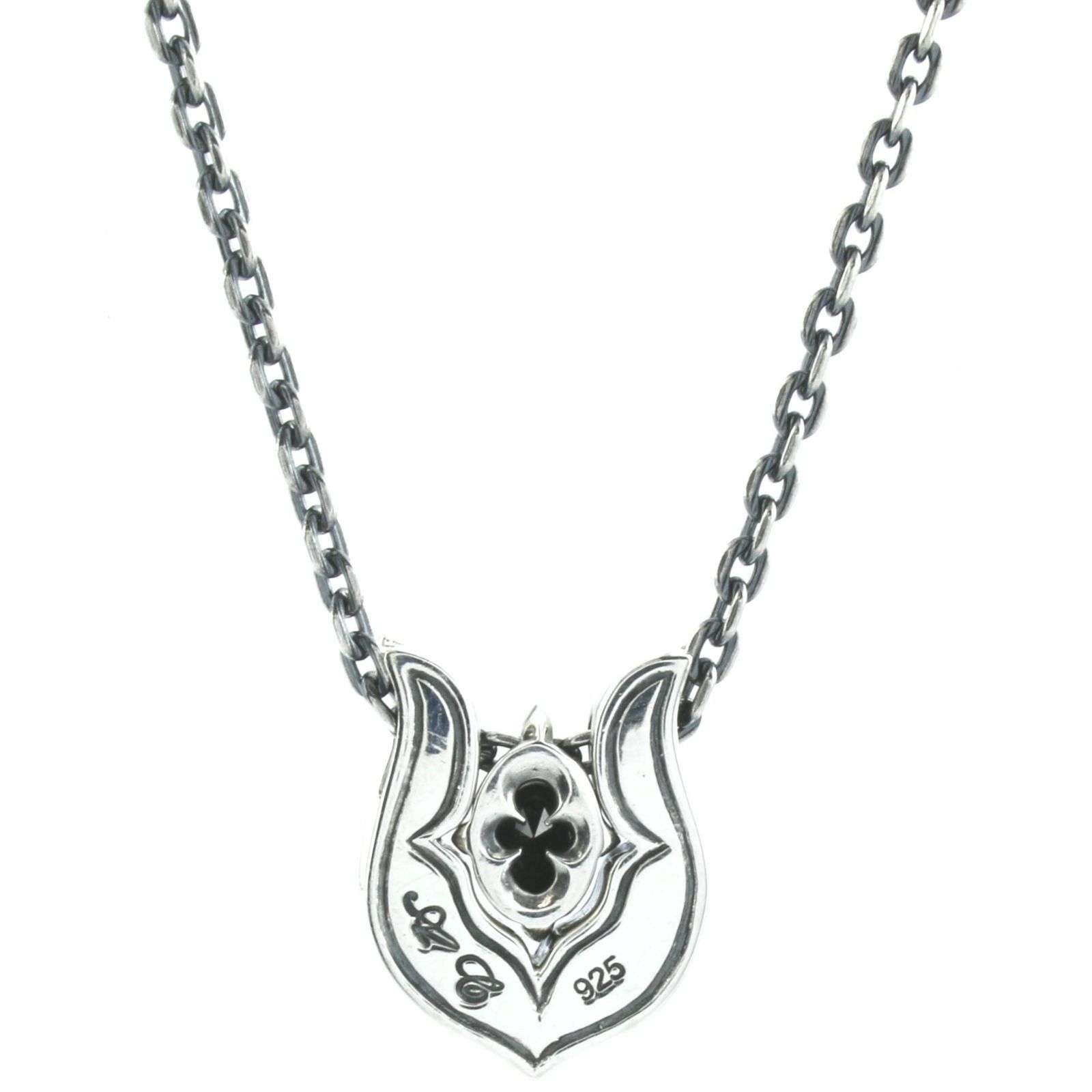 幸運を呼ぶ蹄鉄〈ホースシュー〉を、端正にモダンへ。中央には一粒ストーンのペンダント、その外側をホースシューが包む二重構造。小さなチェーンで結合され、前後のレイヤーがわずかに揺れて胸元に奥行きを生み出します。ホースシューを外せば、ミニマルな一粒だけで上品に。重ねれば、象徴性と存在感が際立つ――気分で使い分けできる2WAY仕様です。表情はアルテミスクラシックらしい唐草とトレサリーの意匠。磨きといぶしのコントラストが陰影を描き、黒石の艶を凛と引き立てます。フォルムはすっきりと小ぶりながら、近くで見るほど作りの丁寧さが伝わる仕立て。アトリエで一つずつ成形・彫り・磨きを重ね、肌あたりまで滑らかに整えました。毎日に幸運と気品を添える小さな“お守り”ペンダントです。