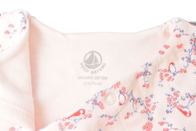 PETITBATEAUベビー女の子用プリントバードピンク/ブルー出産祝い商品番号pb-20-009ライン-素材コットン100%サイズ/目安3ヶ月、3m/60cm着丈:36.5cm身幅:17cm
