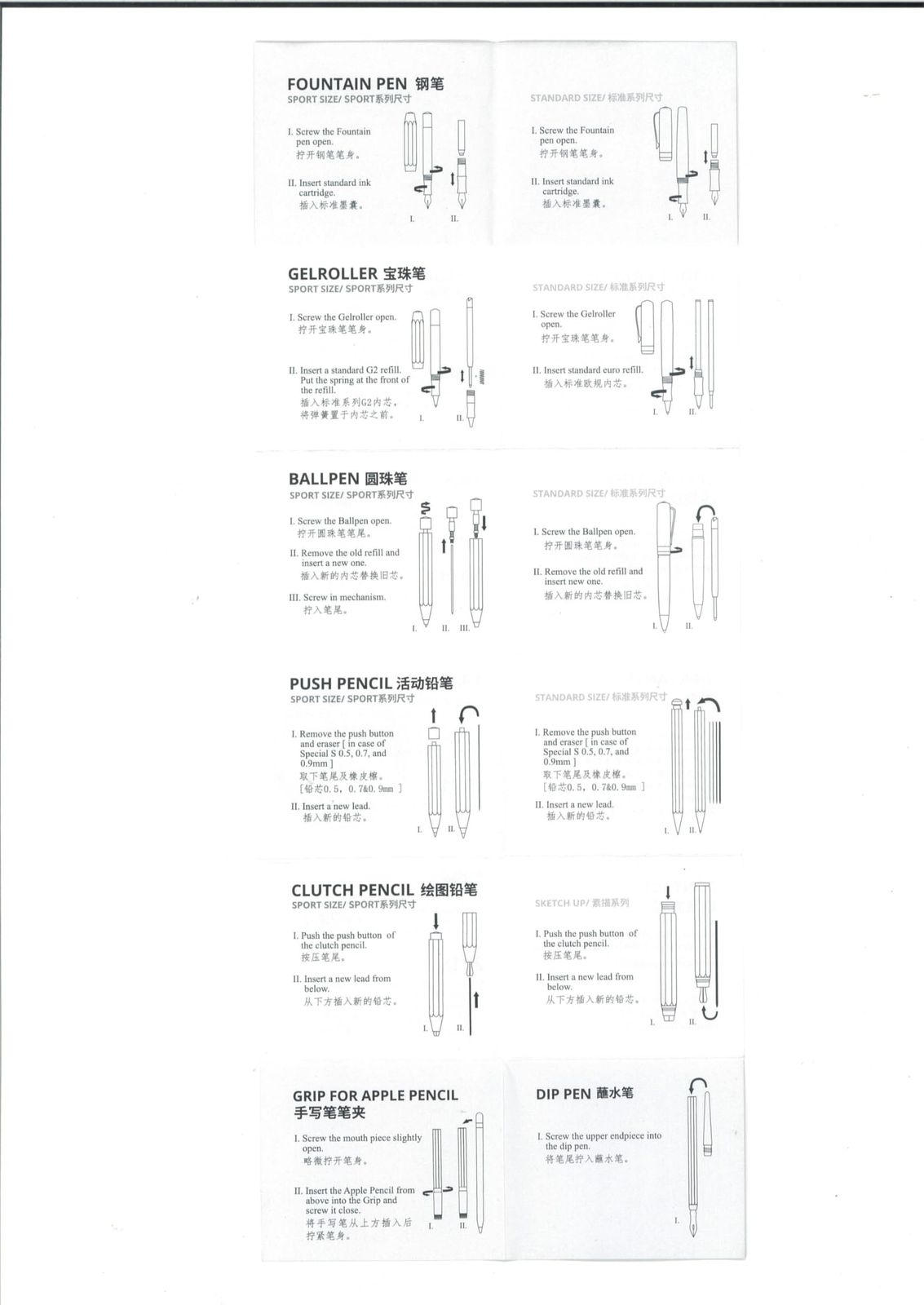 構造はノック式素材はアルミ、真鍮説明書は、英語、中国語