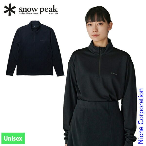スノーピーク Pe Wo ハイブリッドハーフジップTシャツ SW 24 AU 018 BK ブラック L