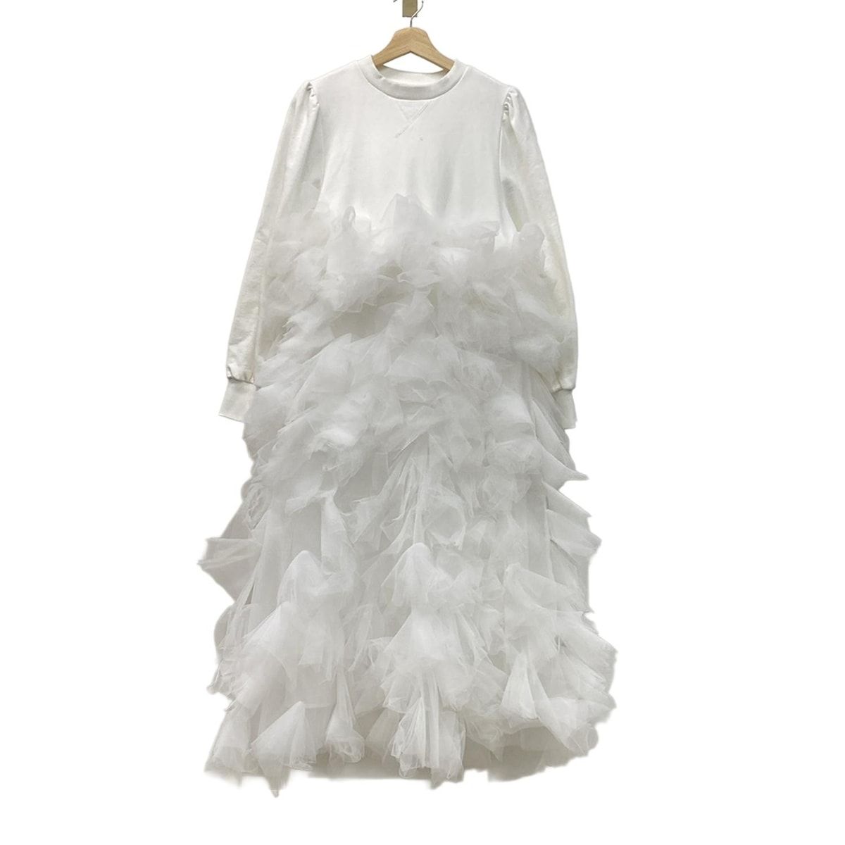 Bibiy. ビビィ ワンピース サイズF レディース - 白 クルーネック 長袖 マキシ丈 チュール トレーナー