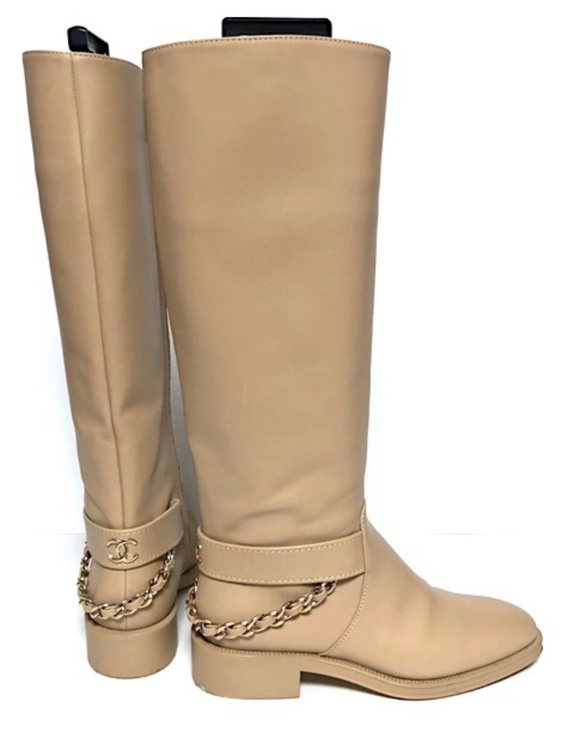Botas largas de cadena CHANEL G39171 marca CC beige mujer 37C