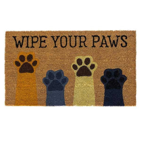 4匹の肉球と「WIPE YOUR PAWS」の文字が書かれたデザイン!