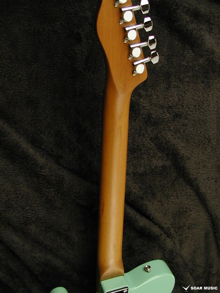 Bacchus(バッカス)ユニバースシリーズのエレキギター BTE-1-RSM/M SFG サーフグリーン 新品です。ローステッドメイプルネック採用のテレキャスタータイプ。ローステッドメイプルとはメイプルを高温で加熱処理して材の中の水分や油分を揮発させることにより剛性を高めた材で、ネックに使用されるとその効果は安定性だけでなくサウンドにも及び、豊かな生鳴りと経年変化したビンテージのようなこなれたトーンを生み出します。