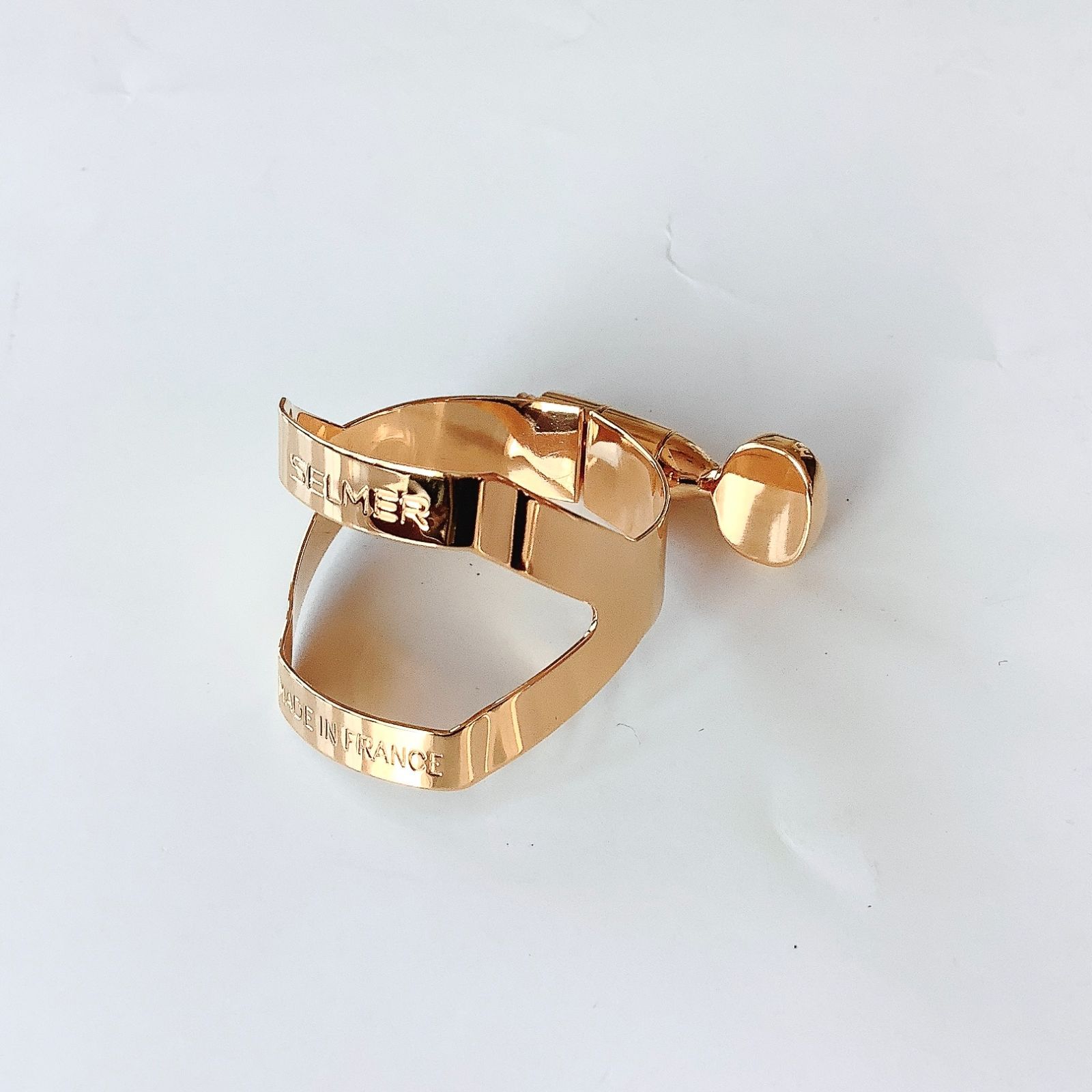 華やかな音色の金メッキ仕上げのリガチャーです。
