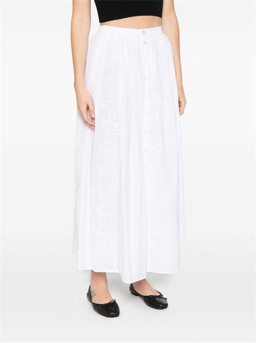 白いアイレットの刺繍、ボタン留め、コットン素材