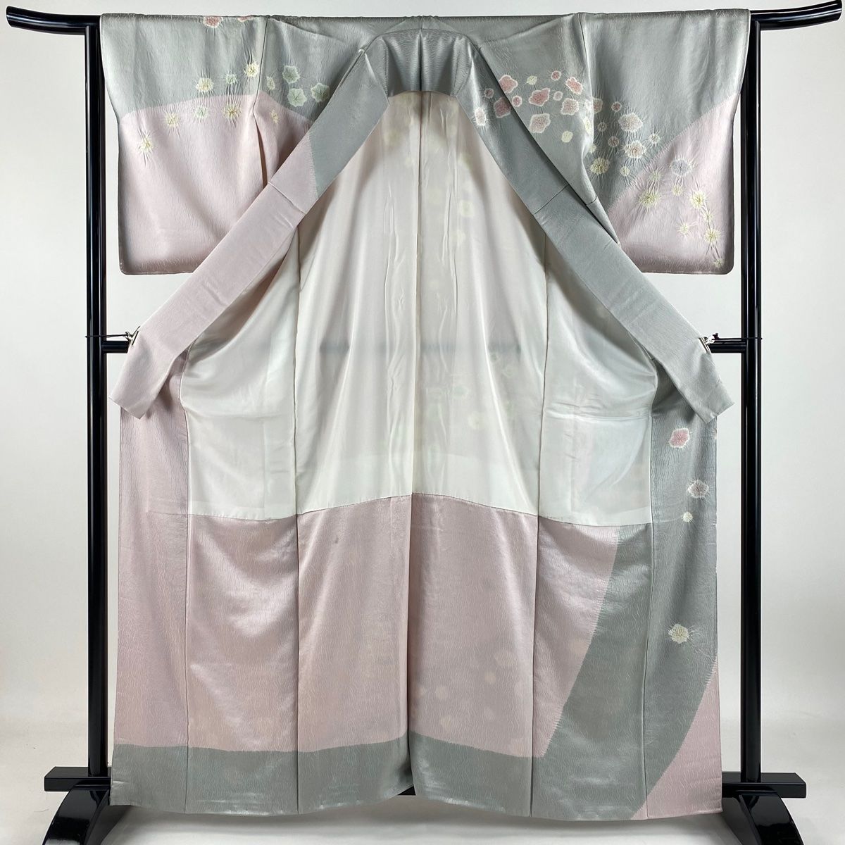表地所々にヤケ、衿周りや両袖口中に薄汚れ、表地所々に金彩の変色がございます。