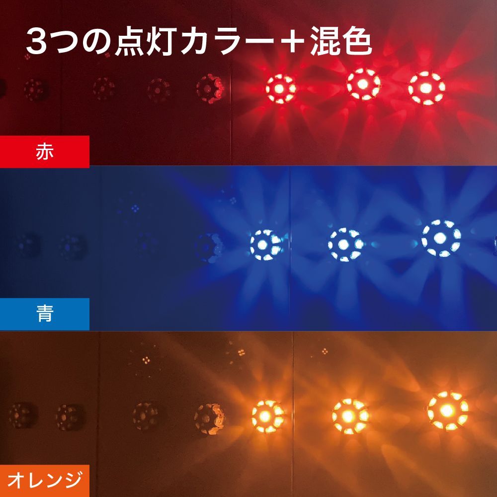 夜間の工事現場、道路、工場内などの注意喚起・誘導にご使用いただける360度発光するマグネット式の警告灯です。