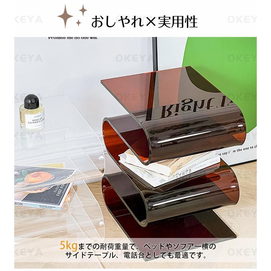 サイドテーブル アクリル S字型 透明 おしゃれ インテリア サイドテーブル ディスプレイテーブル おしゃれ かわいい ローテーブル 机 デスク