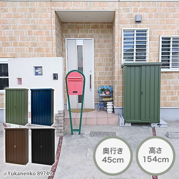 物置 屋外 おしゃれ 大型 (幅90奥行45高さ154) 収納庫 ストッカー ベランダ収納 ベランダ バルコニー スチール収納庫 カーキ