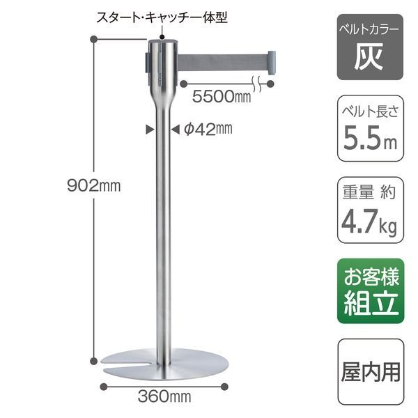 テラモト ベルトパーテーションスリム 5.5 m ベルトグレー 屋内用 組立品