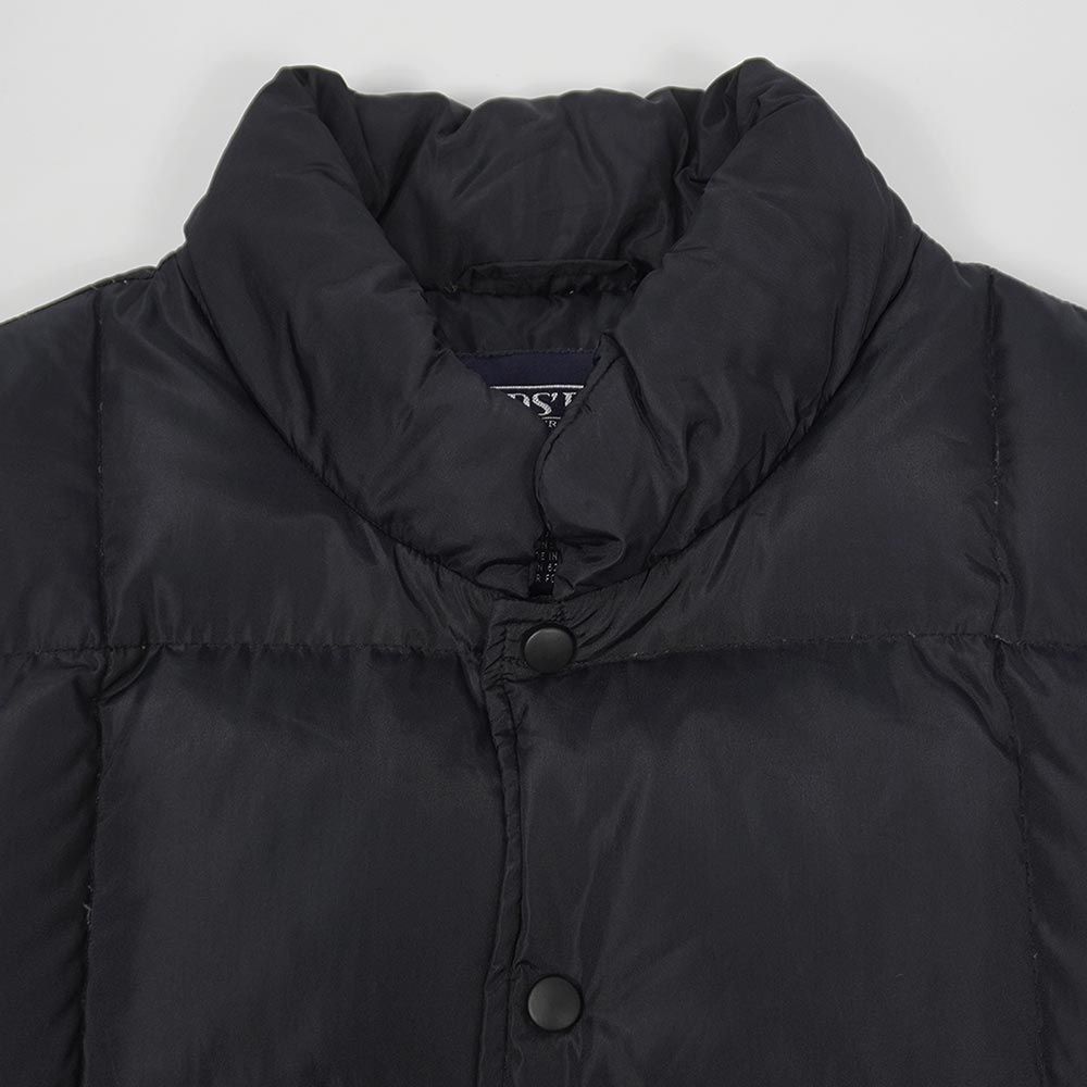 フロントはスナップボタン仕様でお色は一番人気のブラック、厚手のパーカー等ともレイヤードし易い大きめサイズも魅力です。