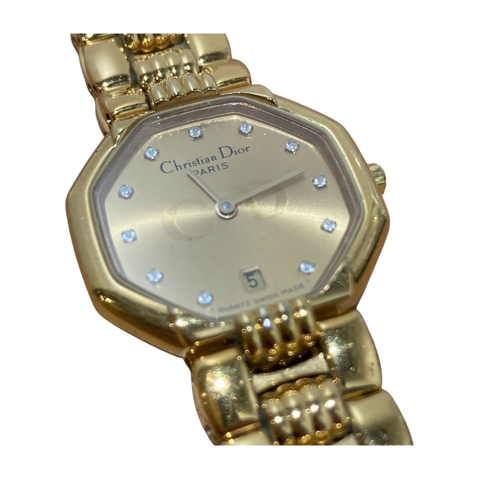 Christian Dior クリスチャンディオール - Swing Octagon スウィング オクタゴンリストウォッチ ラインストーンダイヤル レディース ゴールド