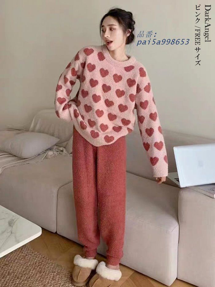 ルームウェア パジャマ セットアップ 部屋着 ハート モールニット 冬 あったか もこもこ ワンマイルウェア 上下セット pai 5 a 998653
