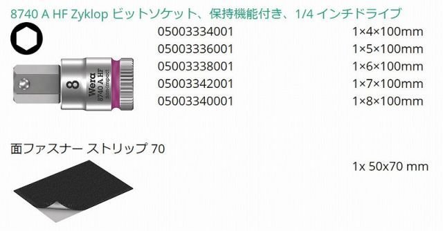 セット内容/付属品:ビットソケット(保持機能付):003334・003336・003338・003342・003340(4・5・6・7・8mm)