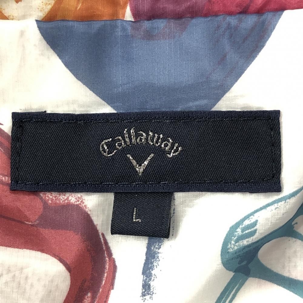 超 キャロウェイ 2 WAYジャケット 白×マルチ ゴルフクラブ総柄 メッシュ裏地 袖着脱可 メンズ L ゴルフウェア Callaway