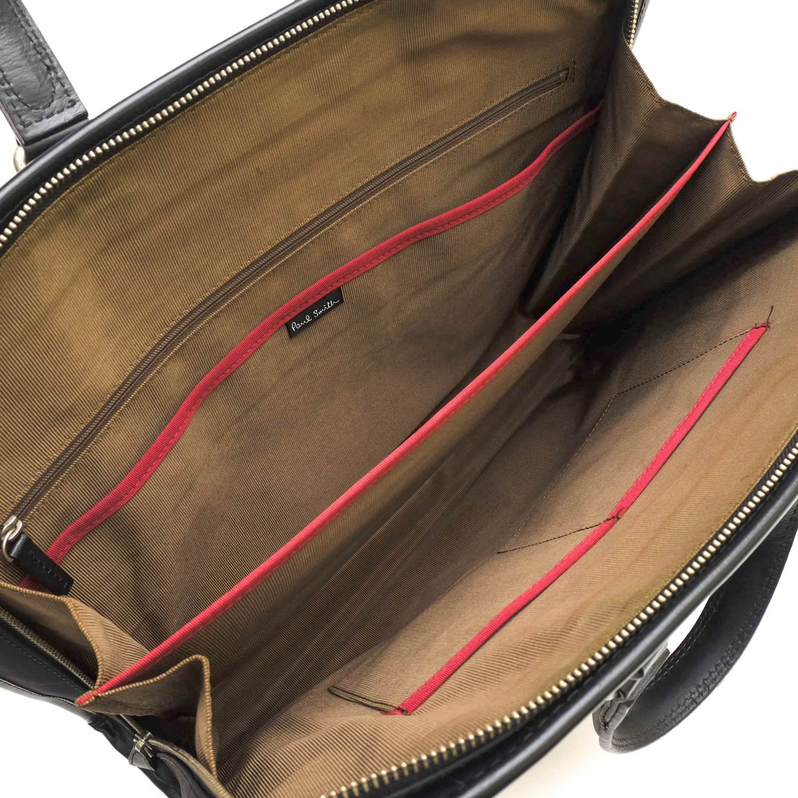 傷に強いナイロン地に、シャドーでピンストライプが入ったクールなデザインが魅力的なポールスミスのビジネスバッグ。型押しのボディに、定番マルチストライプワンポイントタグがお洒落で高級感があります。口が大きく開くので中身が見渡しやすく、荷物が取り出しやすいのも嬉しいポイント。