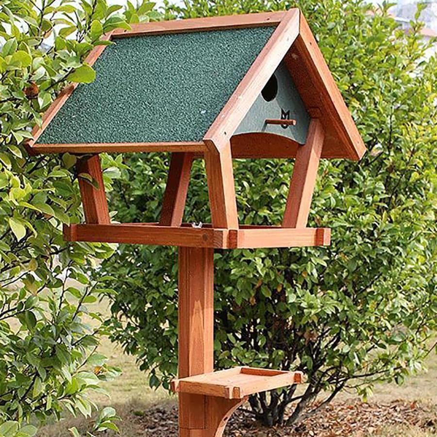 野鳥の餌台 木製屋外バードフィーダー 屋根付き 自立鳥のエサ台 鳥餌入れ 野鳥観察 高さ128 cm 据え置き 庭 室外 庭園 野鳥用 ガーデニング飾り物 設置簡単